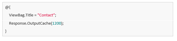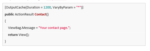 Now you can start defining what you want to store in the output cache. You can do this in the controller or in a view. You can simply specify a controller action result to store in the output cache by adding the OutputCache attribute to the action method.