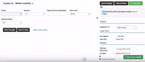 - Give a name for the Test Set; further information can be provided using the custom fields